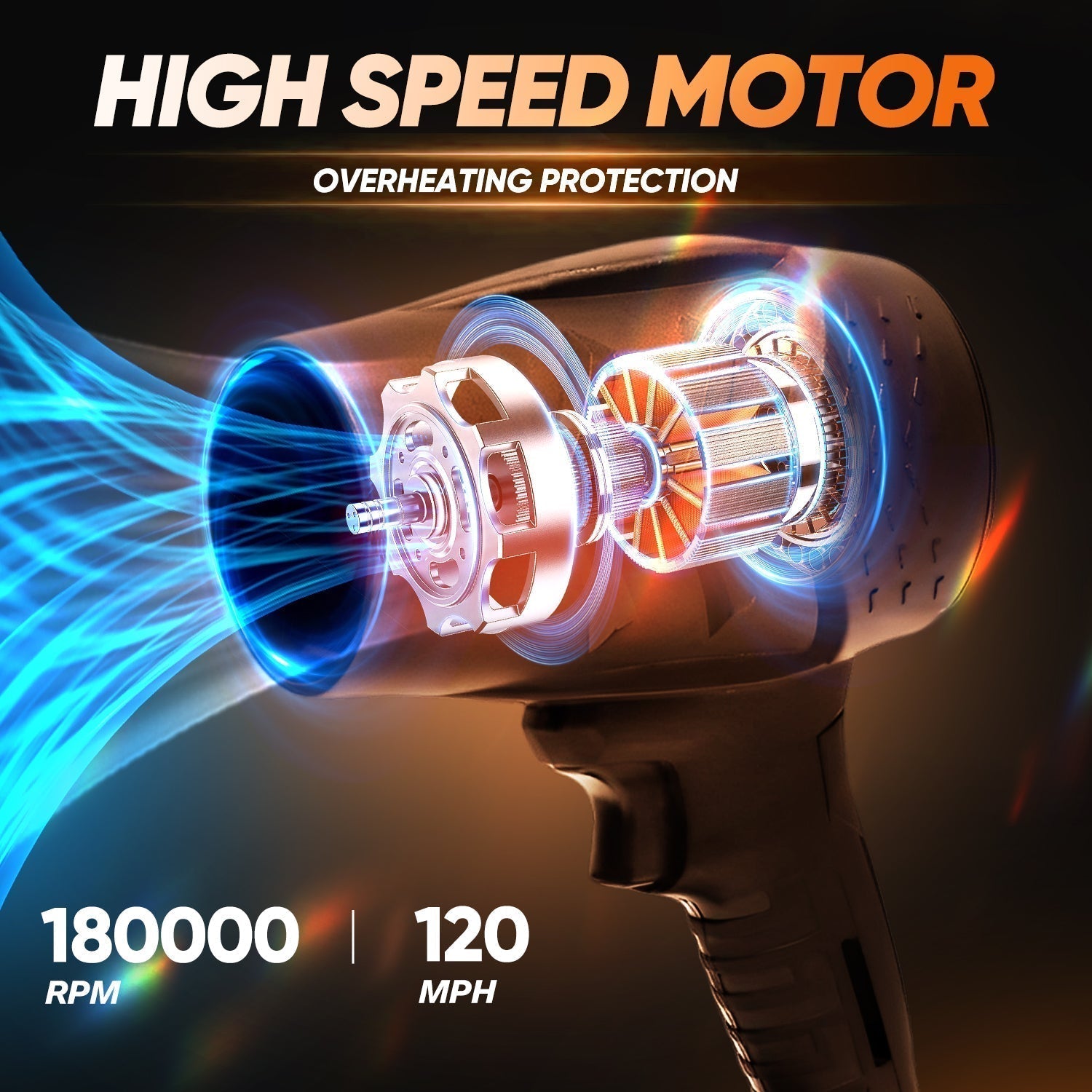Hohe Leistung: Der Air Duster bietet eine starke und effiziente Reinigung mit einer Drehzahl von 180.000 U/min und einer Blaskraft von 500 G.
